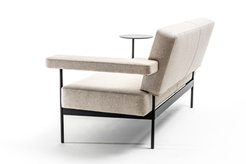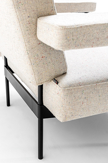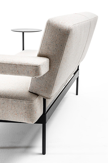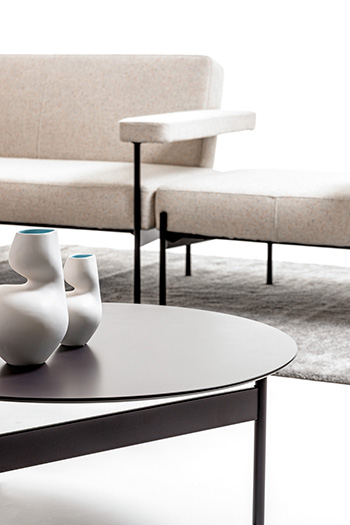 TILOS è una seduta con un nastro metallico avvolgente che sostiene le geometrie dei cuscini, una collezione di divani e complementi contemporanei dall’estetica raffinata ed avvolgente.
